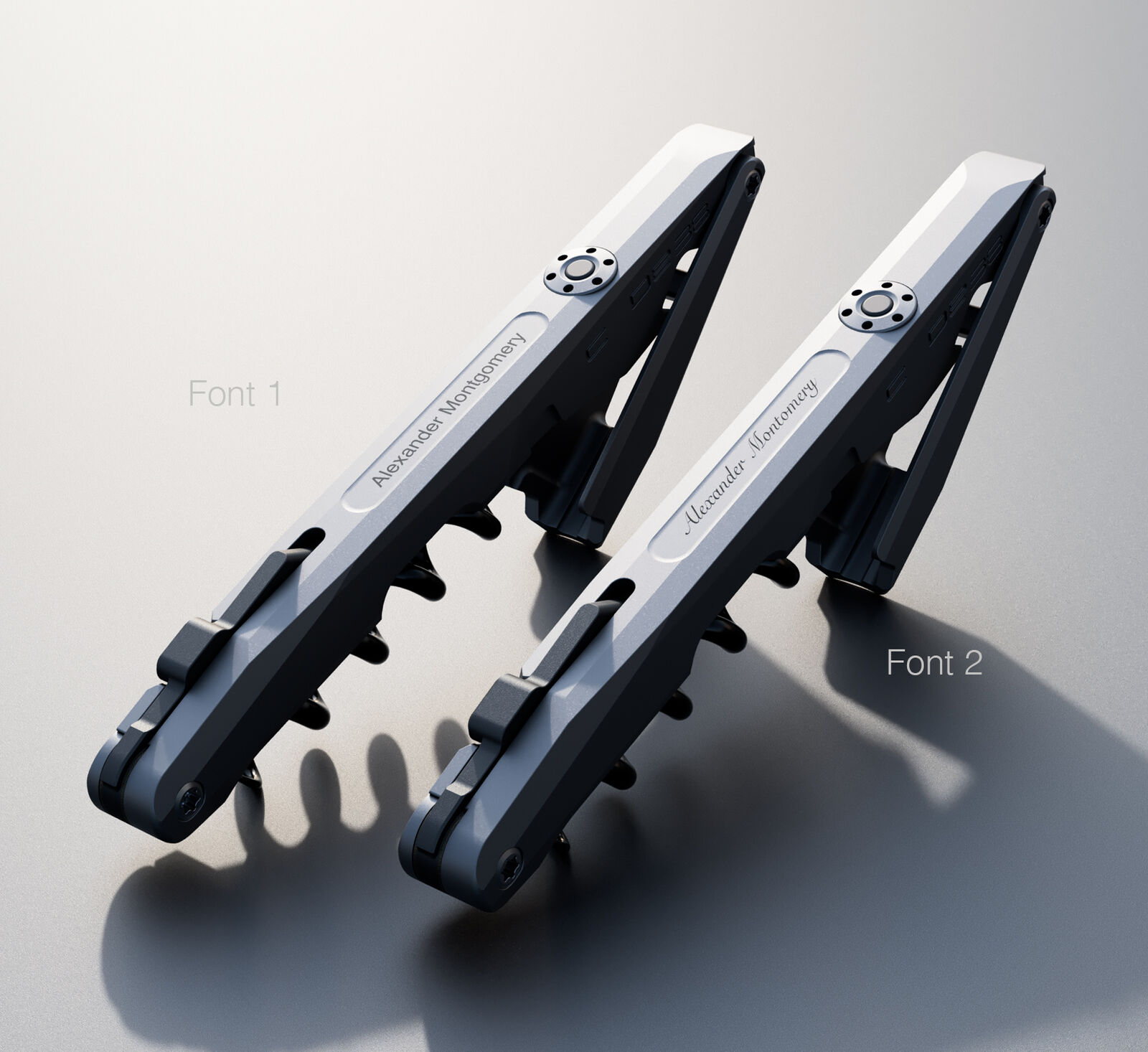 Design Notes: The Pro X model was a response to the request for a lighter weight variant. Sections of the body were milled out giving a unique skeletal aesthetic. In the hand, the Pro X is noticeably lighter, and the additions of black titanium coating on the helix, foil blade and piston really lift the aesthetics.